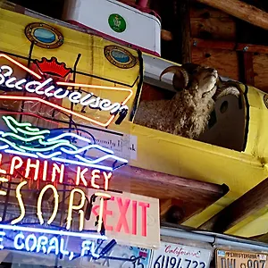 The American restaurant in Dolphin Key Resort - Cape Coral offers dishes for lunch. The restaurant serves American cuisine. Guests can relax at the on-site tiki bar. The bar area includes a lounge. You may walk 6 minutes to Rib City or eat by McDonald's, located only a 7-minute stroll away.